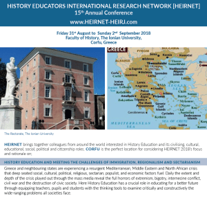 O encontro da “HISTORY EDUCATORS INTERNATIONAL RESEARCH NETWORK [HEIRNET]” de 2018 ocorrerá na The Ionian University, Corfu, Grécia.