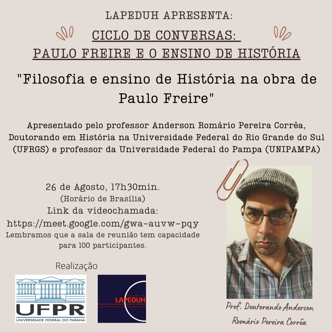 Mais uma edição do Ciclo de conversas “Paulo Freire e o Ensino de História” organizado pelo LAPEDUH – UFPR.