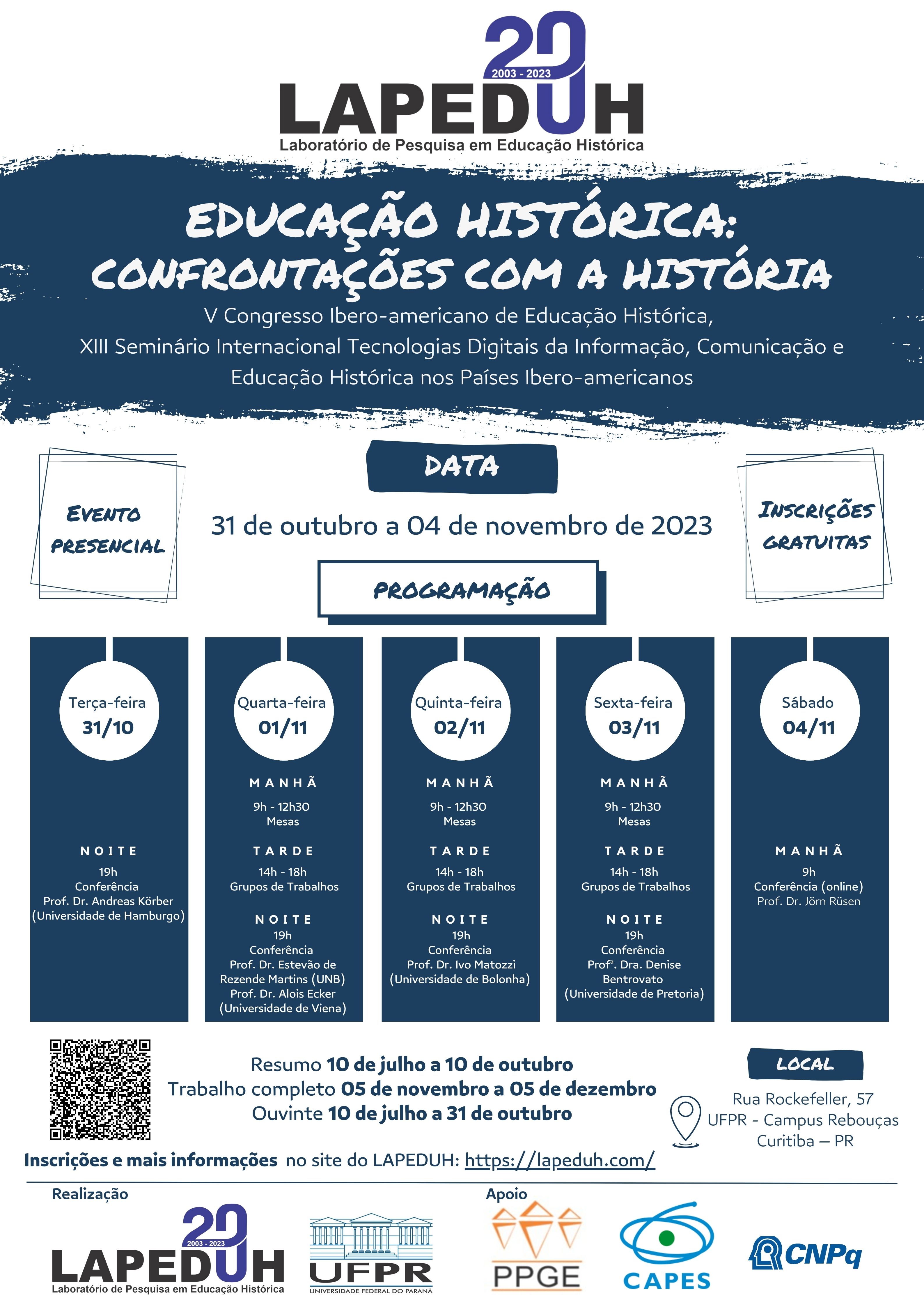 Educação Histórica: confrontações com a História – V Congresso Ibero-americano de Educação Histórica, XIII Seminário Internacional Tecnologias Digitais da Informação Comunicação e Educação Histórica nos Países Ibero-americanos