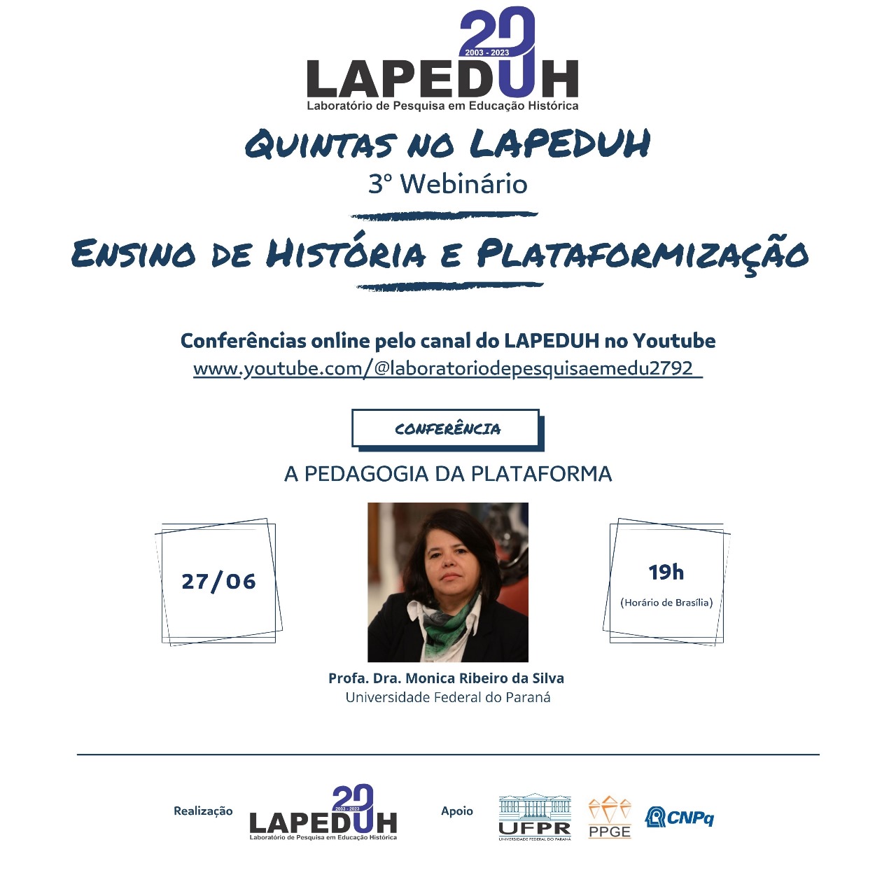 Conferência “A pedagogia da plataforma” com a Profa. Dra. Monica Ribeiro da Silva (UFPR).