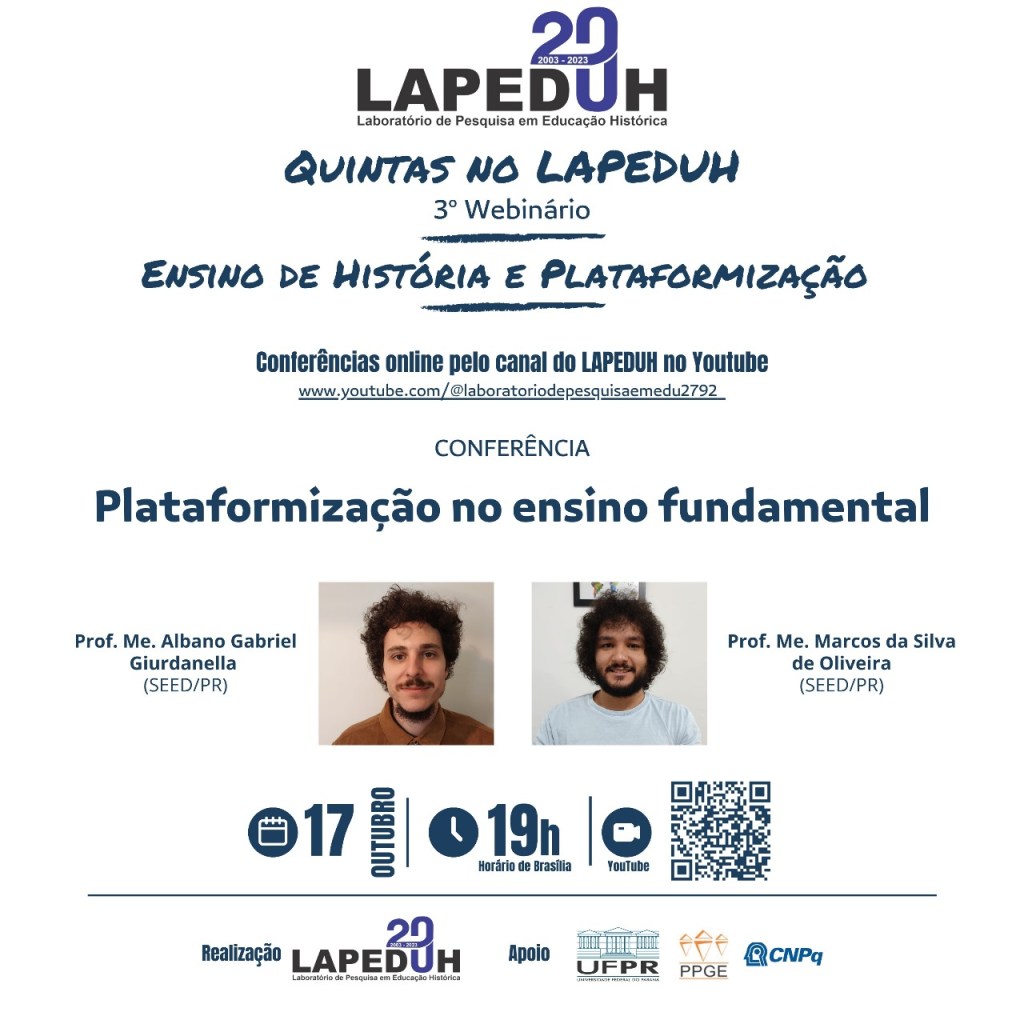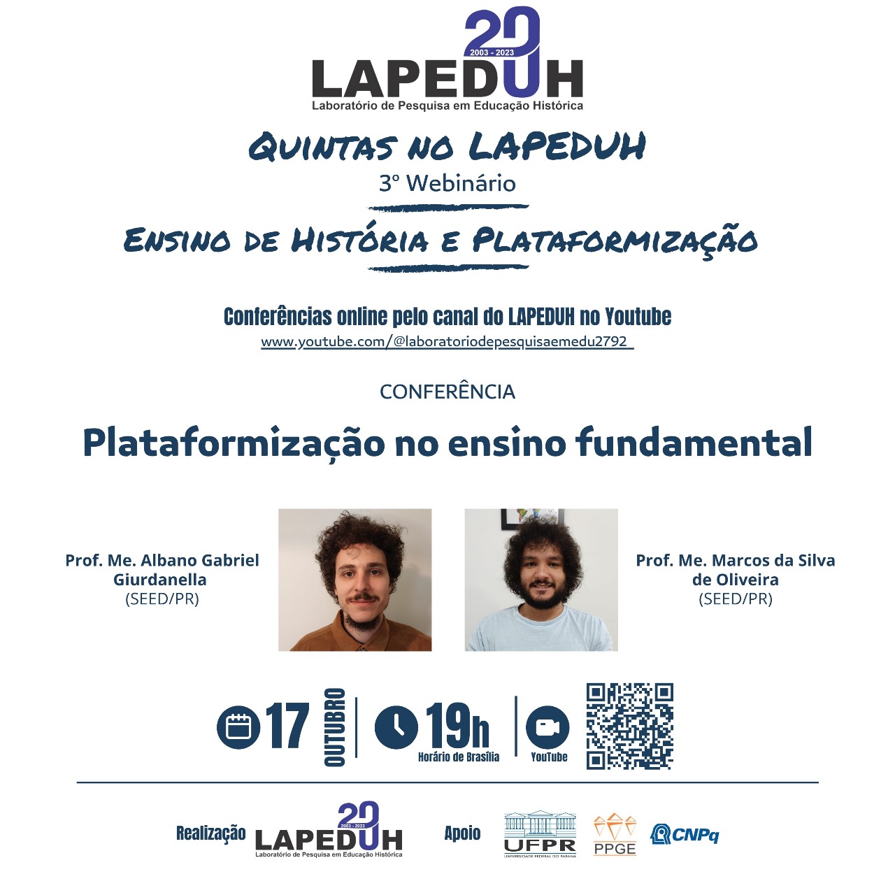 Pelo canal do LAPEDUH no Youtube: https://www.youtube.com/@laboratoriodepesquisaemedu2792