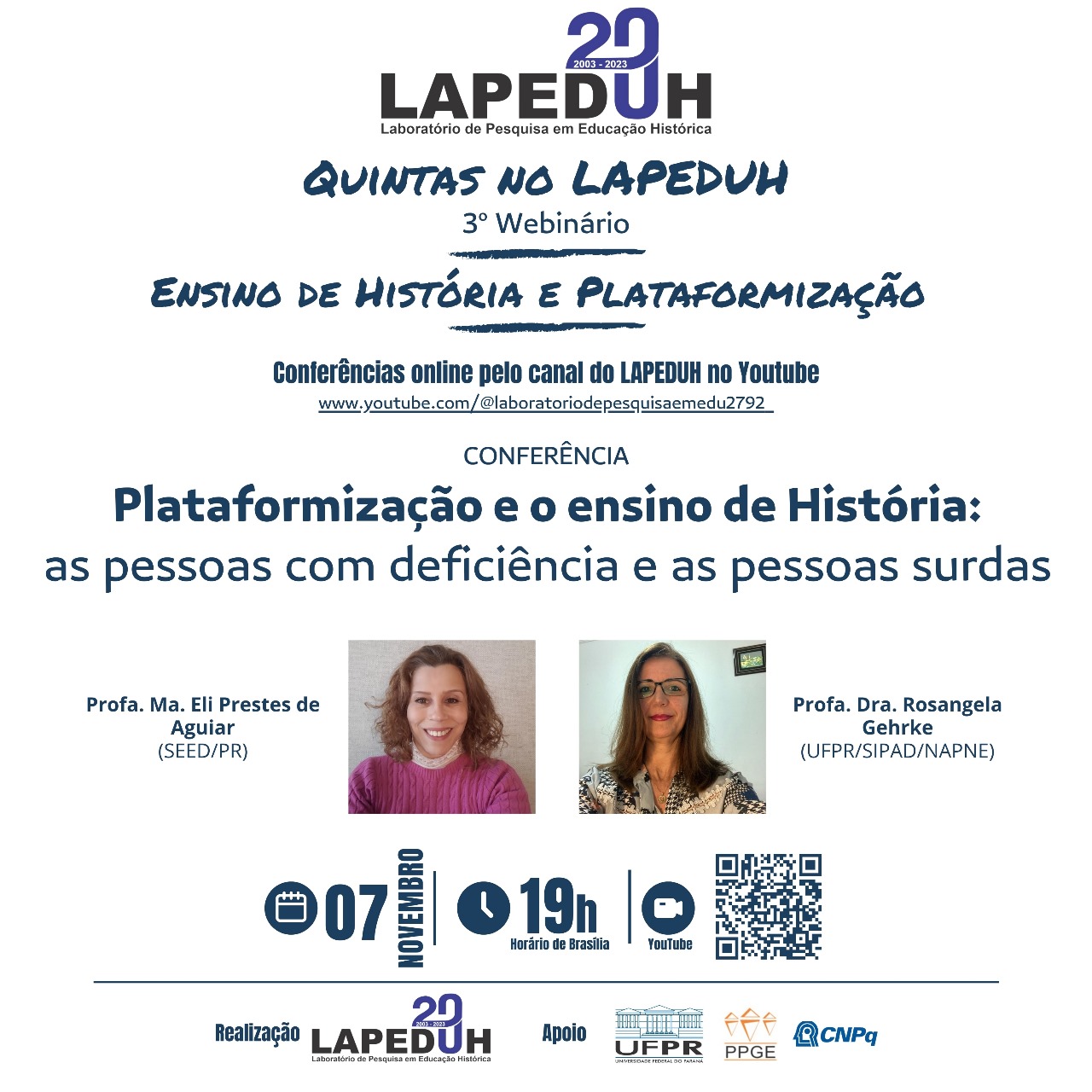 Conferência – Plataformização e o ensino de História: as pessoas com deficiência e as pessoas surdas