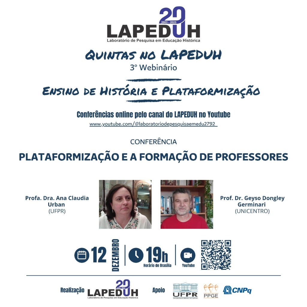 Conferência: PLATAFORMIZAÇÃO E A FORMAÇÃO DE PROFESSORES